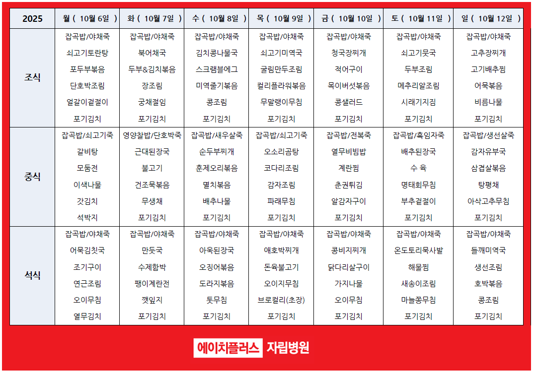 주간식단표[2025.10.06~2025.10.12]