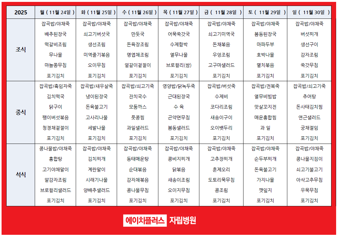 주간식단표[2025.11.24~2025.11.30]